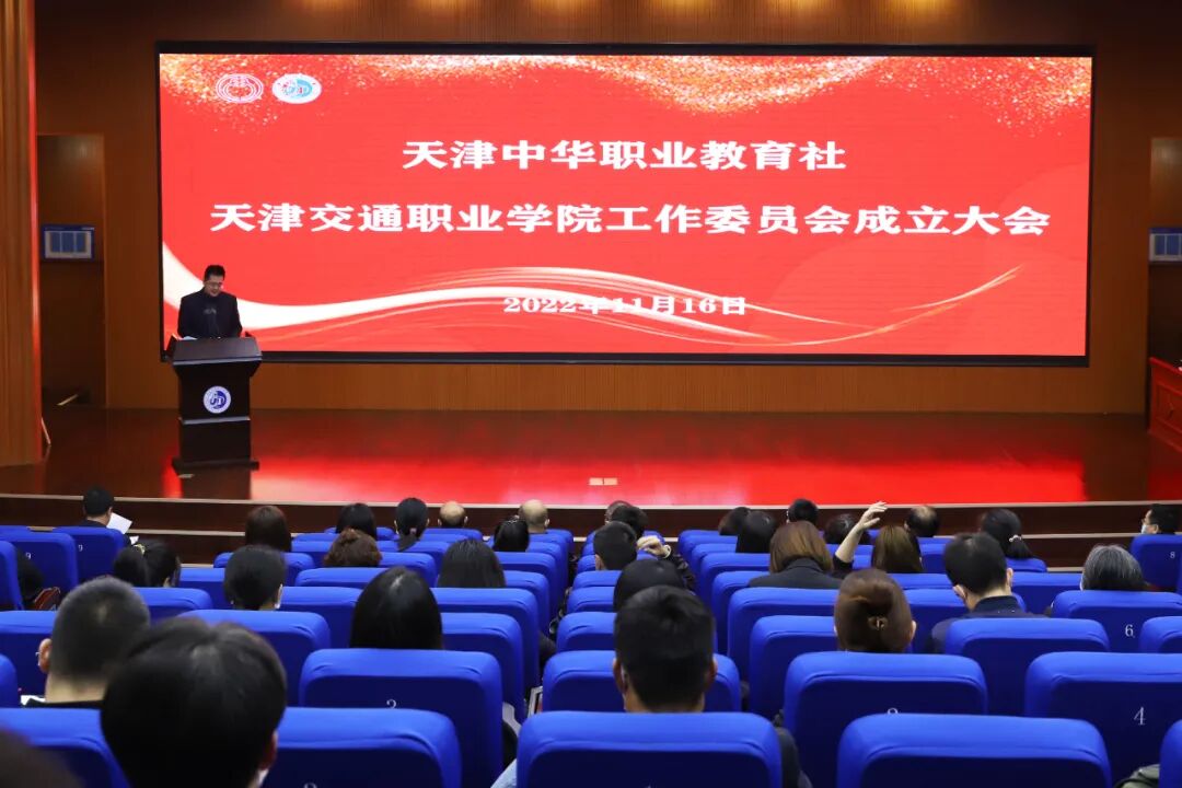 天津中华职业教育社天津交通职业学院工作委员会成立大会暨揭牌仪式于2022年11月17日在学院学术报告举行。天津市政协副主席、民建中央常委、天津市委员会主委、天津中华职业教育社社务委员会主任李文海;天津市中华职业教育社社务委员会常务副主任、天津市社会主义学院副院长岳臻;天津市教育委员会副主任罗延安;天津市教育委员会统战部部长祝建;天津市中华职教社秘书长魏新兵出席大会。学院党政领导班子、社员代表、中层干部及学生代表参加大会。学院党委副书记、院长于海祥主持大会。